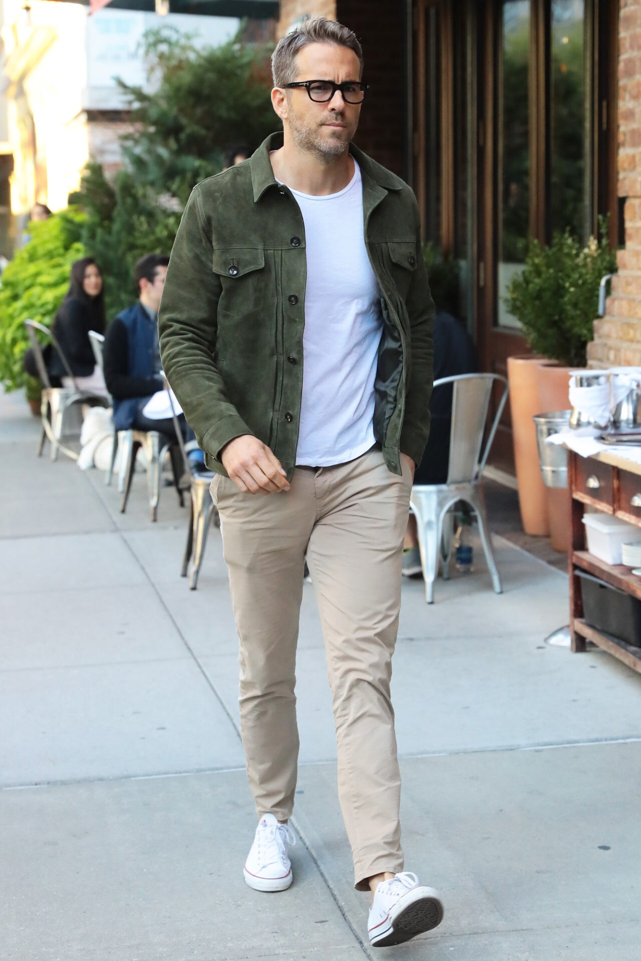 When it comes to layering, the work shirt could be easily swapped out for a denim trucker or navy bomber jacket. Also, you could always go for a pair of boots or loafers if you wanted something dressier than the sneakers shown here.
