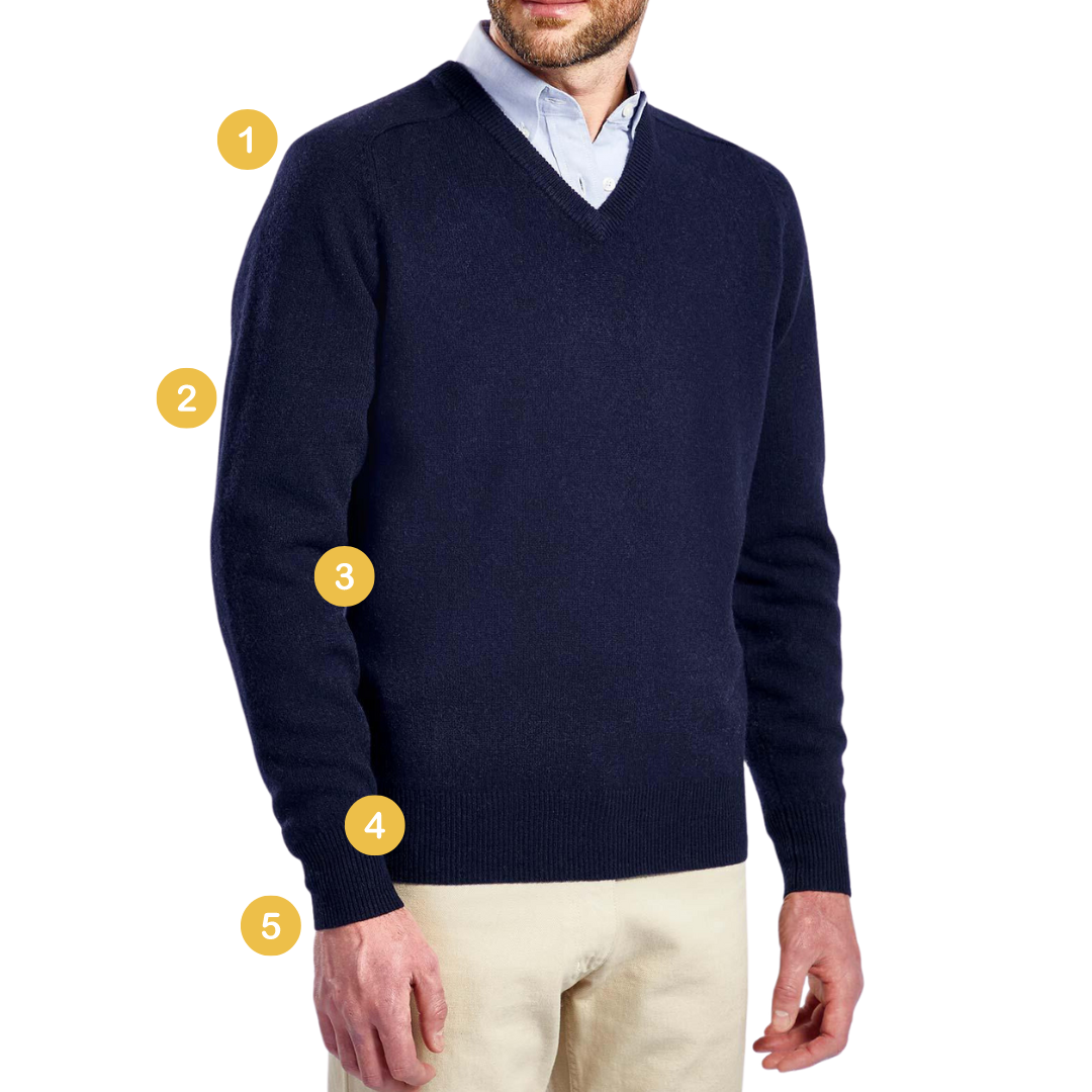 Sweaters made with wool, cashmere, or blends are harder to tailor because these fabrics can be fragile and hard to work with. This means that you should always try and find a sweater in these fabrics that fits perfectly off the rack. The only exception is cotton - this can easily be tailored, but I'd recommend finding perfect fits off the rack as the best option.