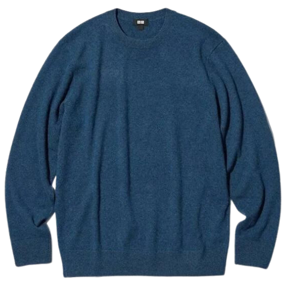 A navy sweater is a timeless addition to your wardrobe and works great when layered over a white or gray shirt.