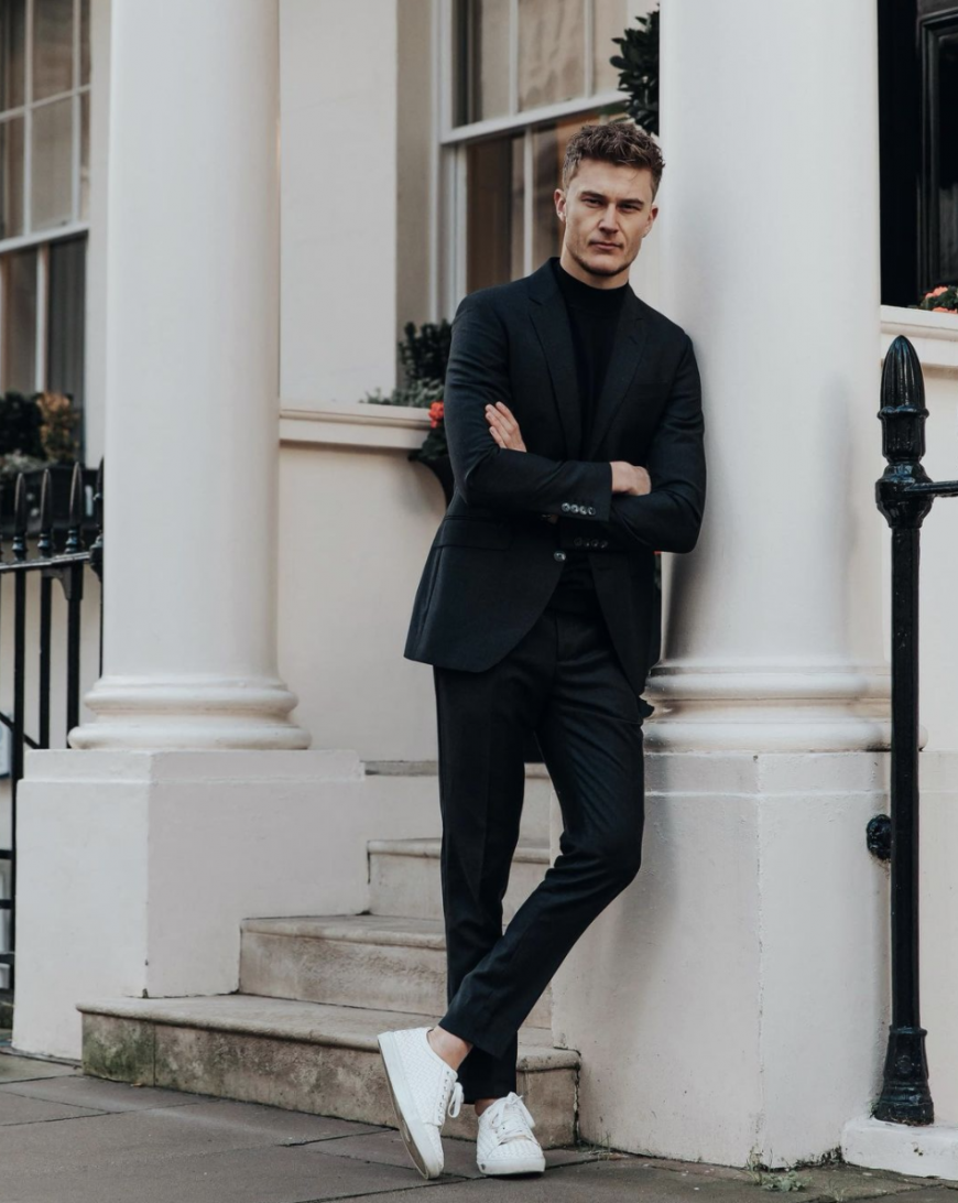 Wearing 'dress sneakers'.